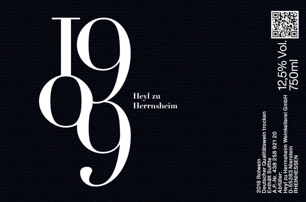 Um das perfekte Etikett zu gestalten, entschieden wir uns für ein zeitloses, typografisches Design. Wir wählten eine traditionelle Serifenschrift, um die Eleganz und Qualität des Weinguts von Heyl zu Herrnsheim zum Ausdruck zu bringen. Die Anordnung der Elemente auf dem Etikett unterstreicht die langjährige Tradition seit 1909, ist aber dennoch minimalistisch gehalten, um die Aufmerksamkeit auf dieses historische Datum zu lenken.