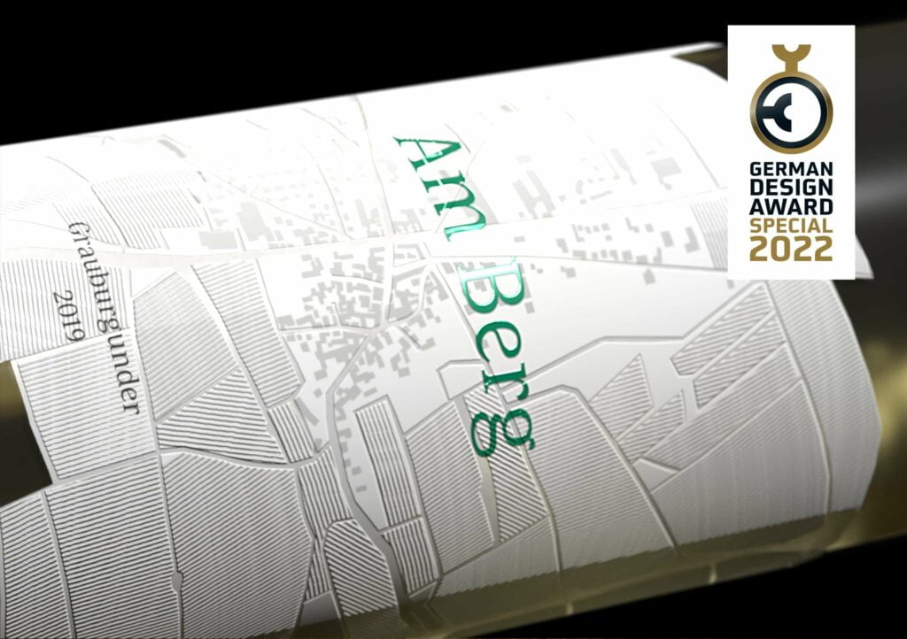 Für die Winzergenossenschaft Herxheim am Berg gestalteten wir ein preisgekröntes Etikett, das mit kartografischen Elementen, Heißfolienprägung und Lana Lumière Papier die regionale Identität und das regionale Lebensgefühl erfolgreich einfängt.